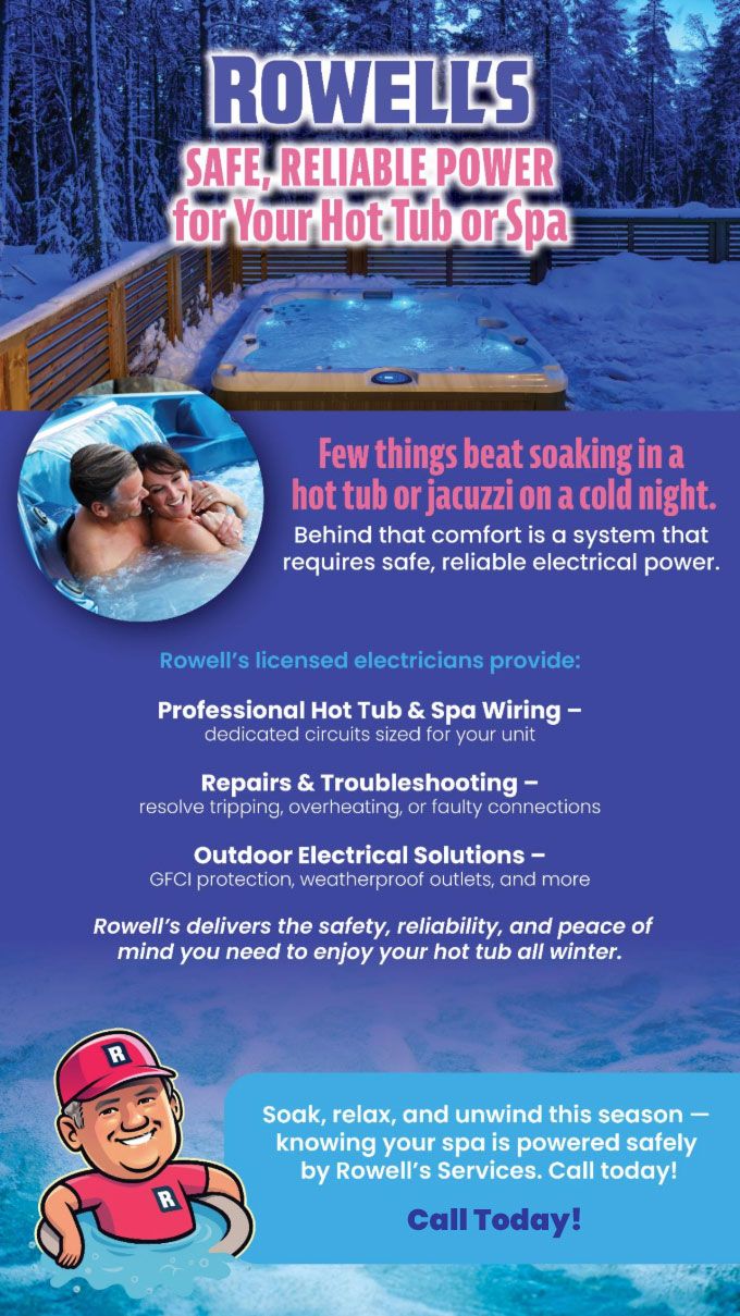 Soak, relax, and unwind this season — knowing your spa is powered safely by Rowell's Services. Call today!